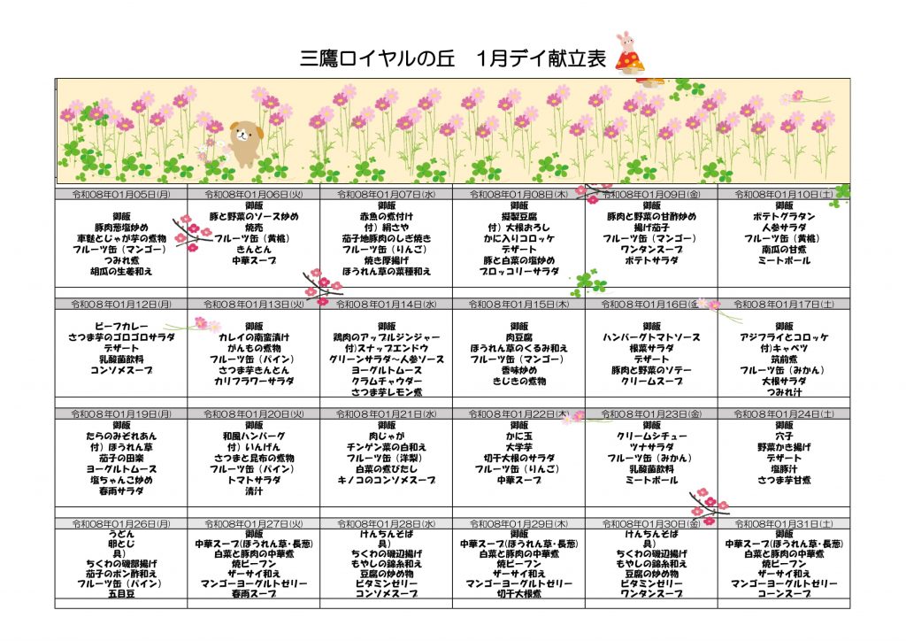 1月献立予定表(通所リハビリテーション)
