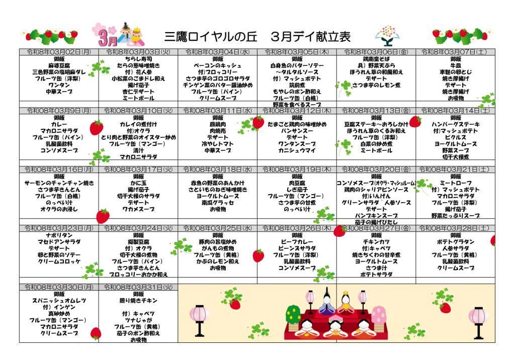 3月献立予定表(通所リハビリテーション)